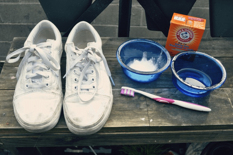 Tip cực hay và bổ ích dành cho những bạn thích vệ sinh chăm sóc giày. Nên chuẩn bị baking soda và kem đánh răng mỗi lần bạn muốn vệ sinh giày sneaker nhất là những đôi màu trắng. Chúng cực kỳ hiệu quả và thân thiện với giày nhất.