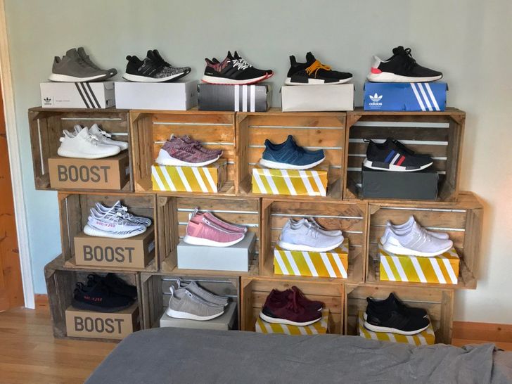 Bạn thường xem những quảng cáo về hộp giày thông minh, đa phần làm bằng nhựa hoặc từ bìa nhựa, tuy nhiên những chiếc hộp này tương đối kín, việc nhét một đôi giày vào đó rất dễ bí hơi tạo môi trưởng ẩm thấp cho nấm mốc phát triển và gây mùi khó chịu. Do dó, nếu không đầu tư được một tủ giày thì bạn có thể bảo quản trong túi vải thông thoáng sẽ tốt hơn cho giày.