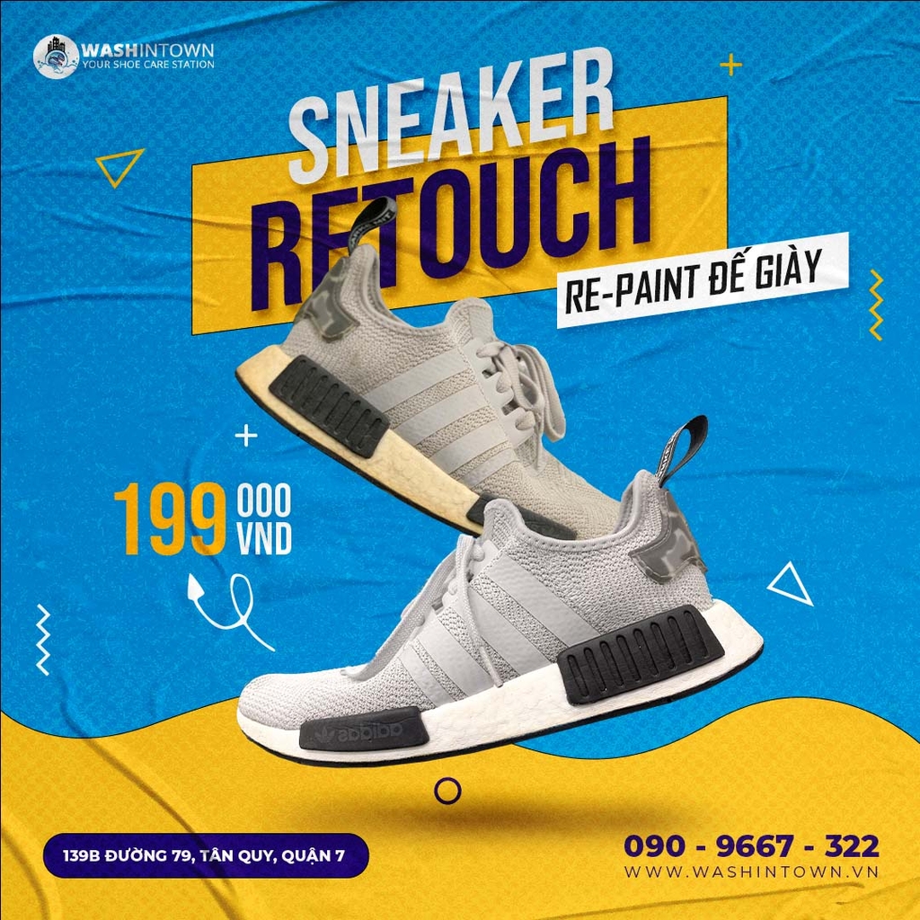 Bên cạnh dịch vụ tẩy ố đế giày quen thuộc, Washintown còn cung cấp gói nâng cao: sơn lại toàn bộ đế giày – phục hồi 100% màu sắc cũ, mang lại cảm giác như vừa mới mua tại store.